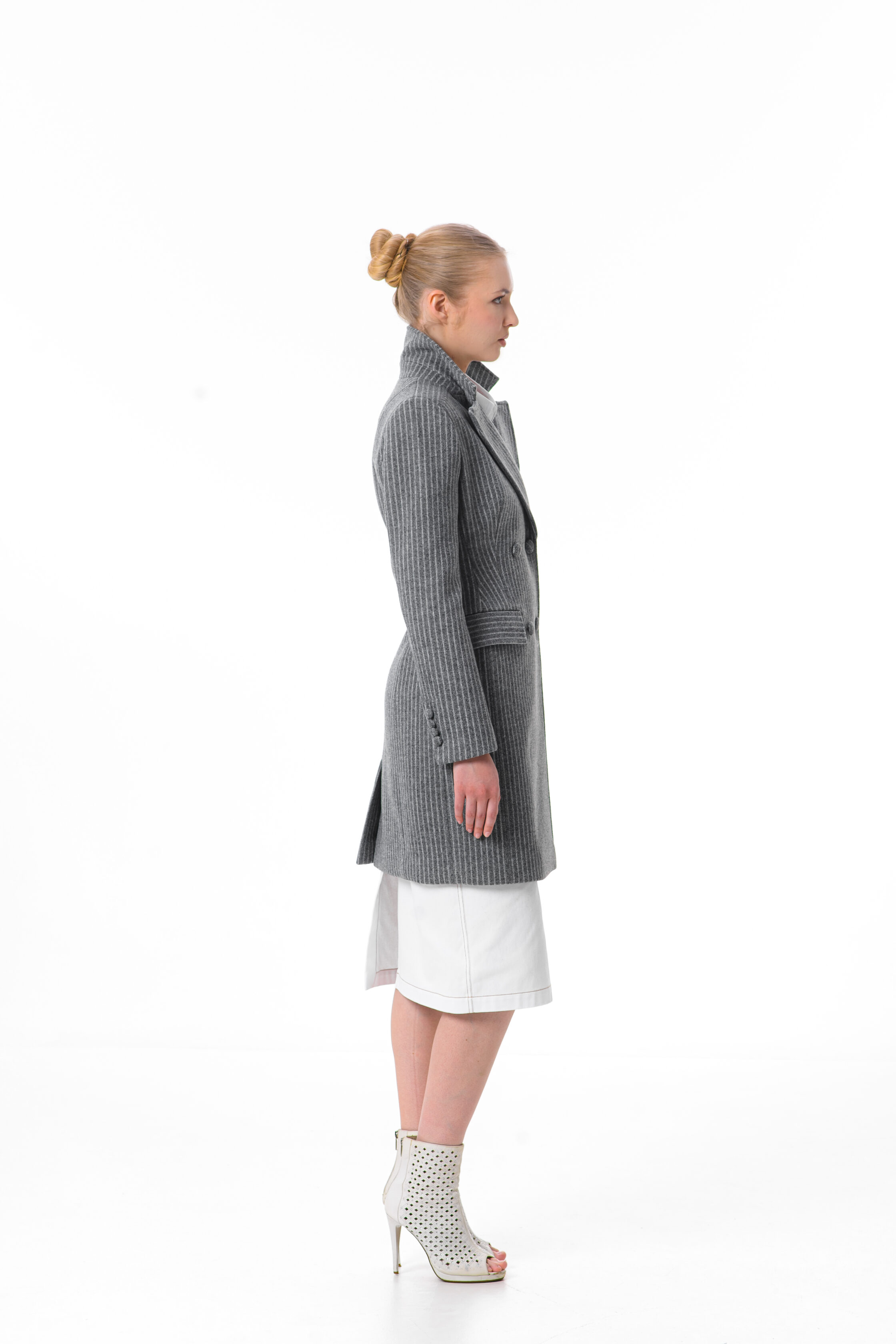 На модели пальто размера XS-S