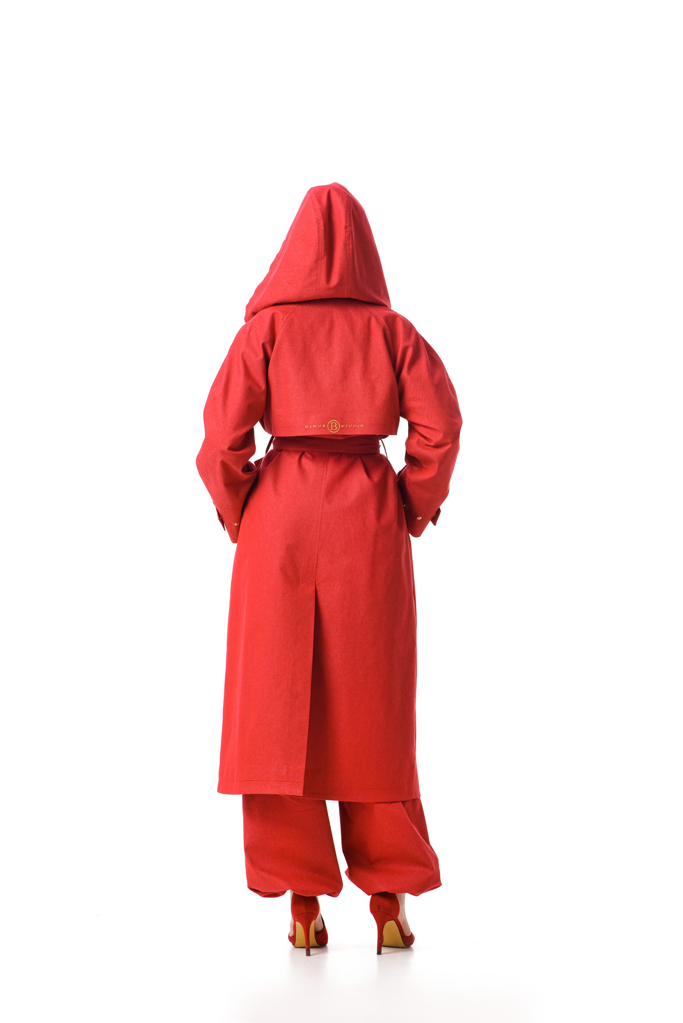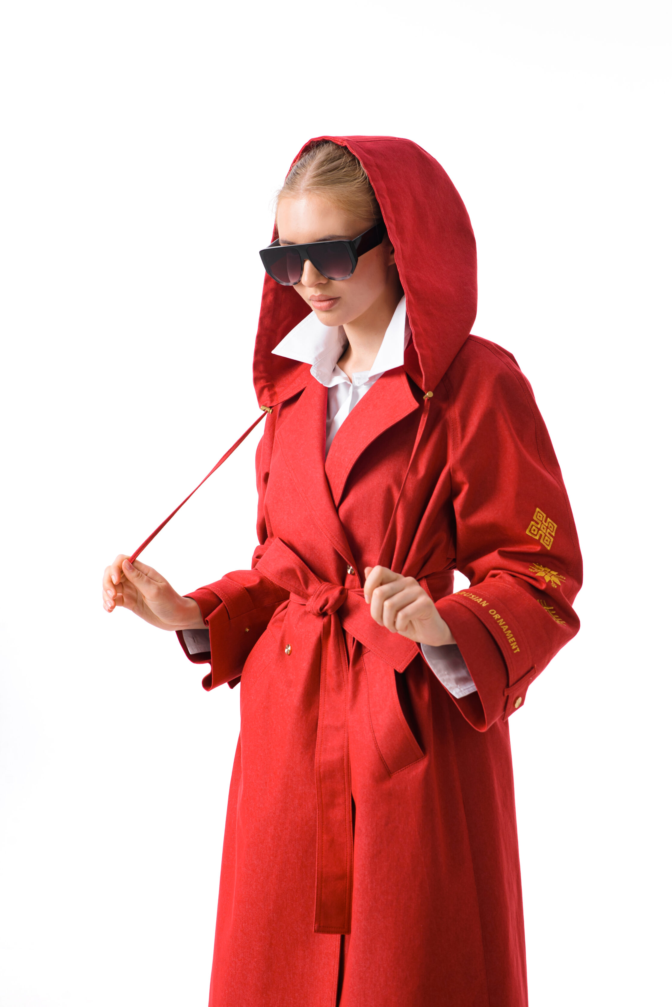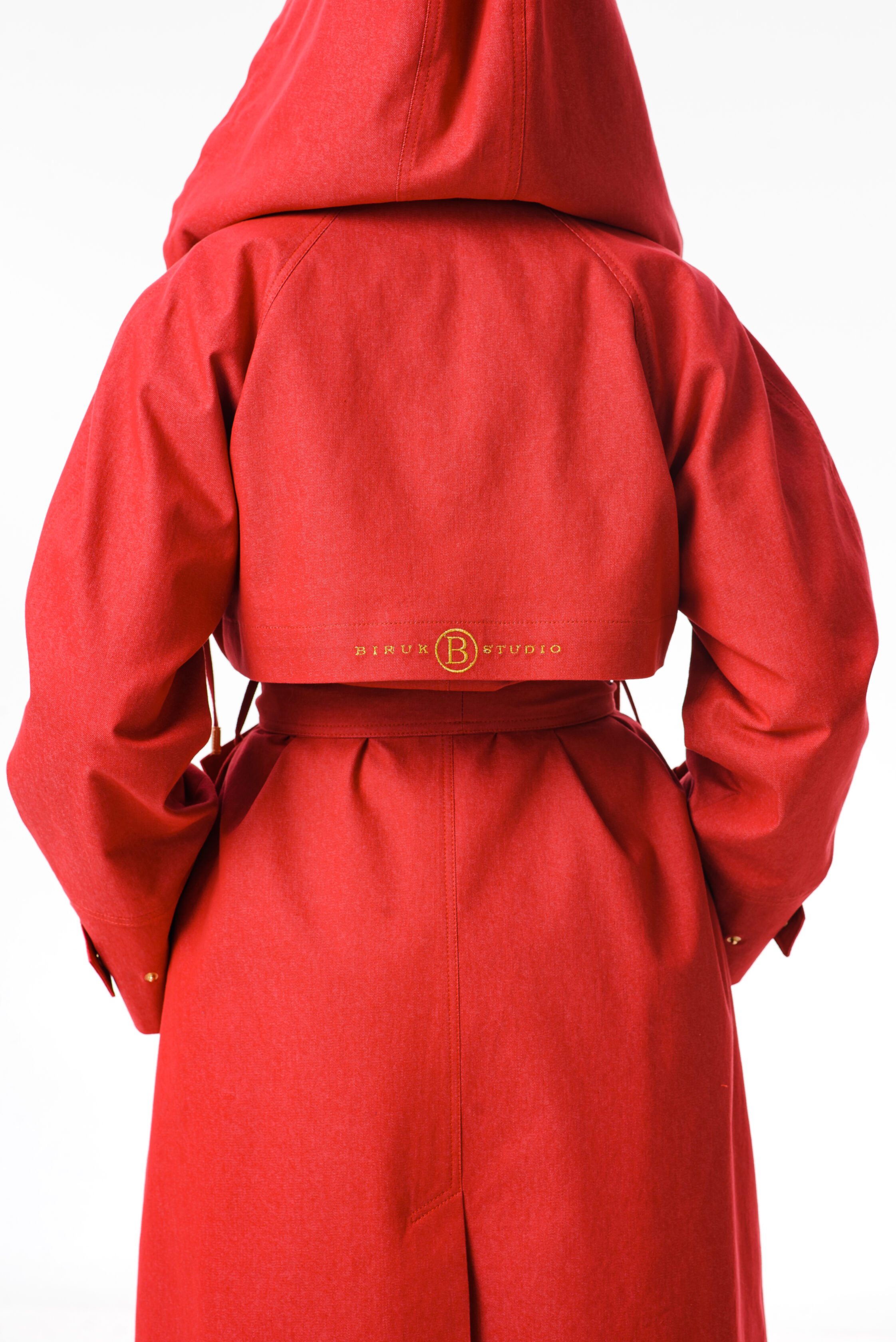 - Широкий двойной капюшон: эффектный, удобный, с архитектурной линией.