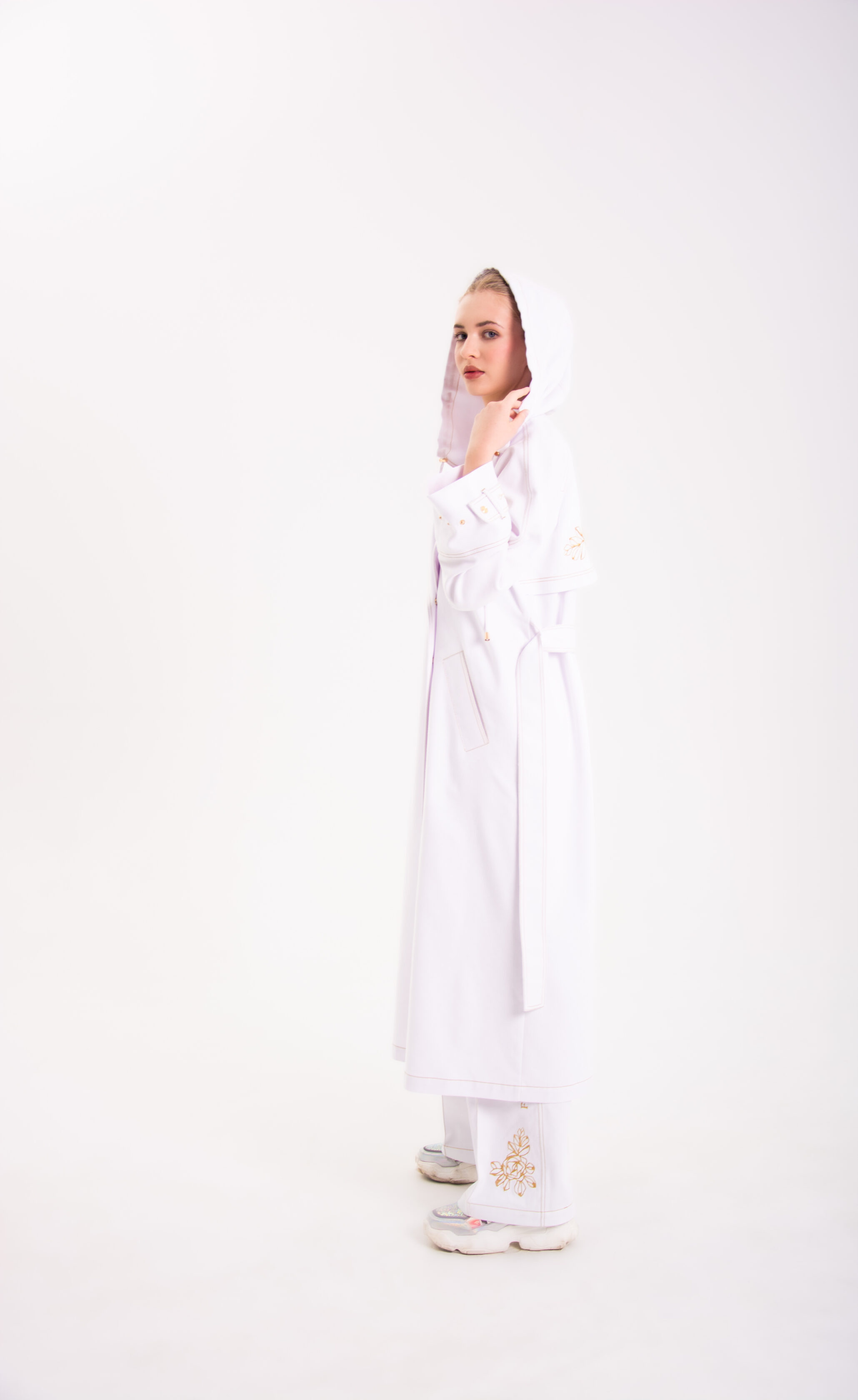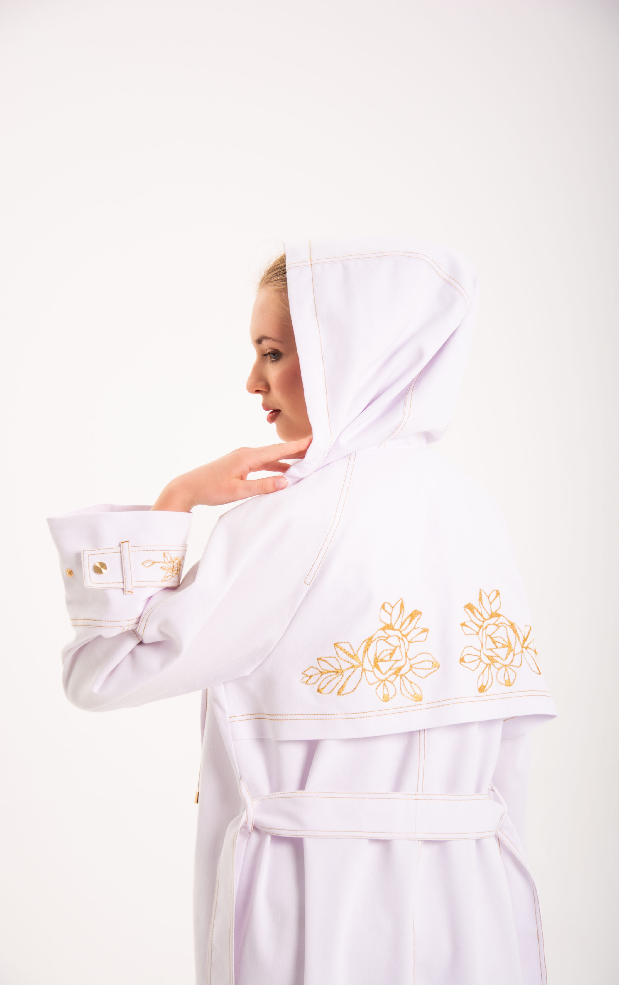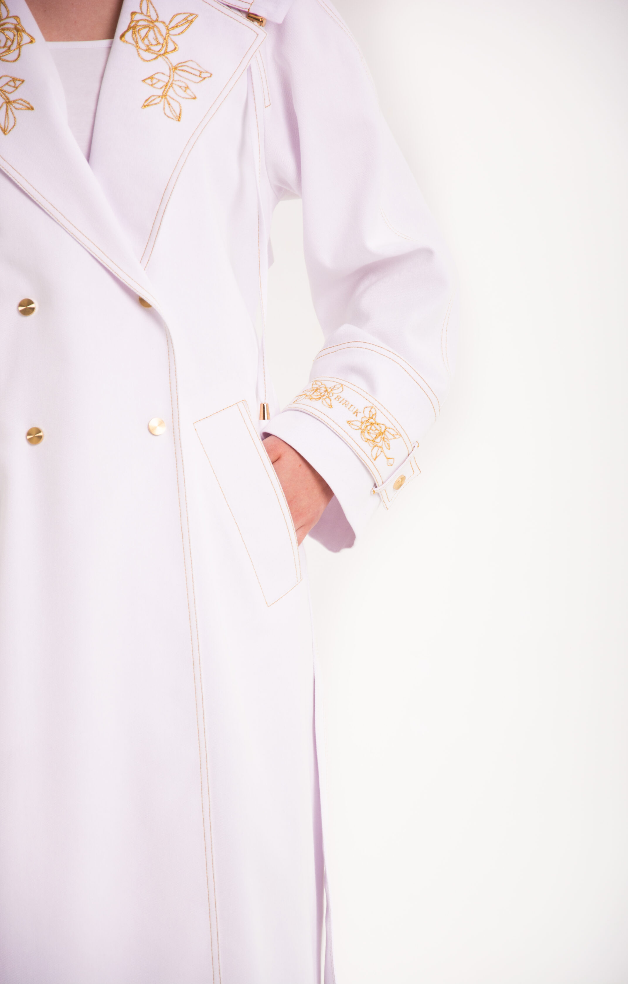 - Золотая вышивка «розы» на лацканах, рукавах и кокетке сзади.