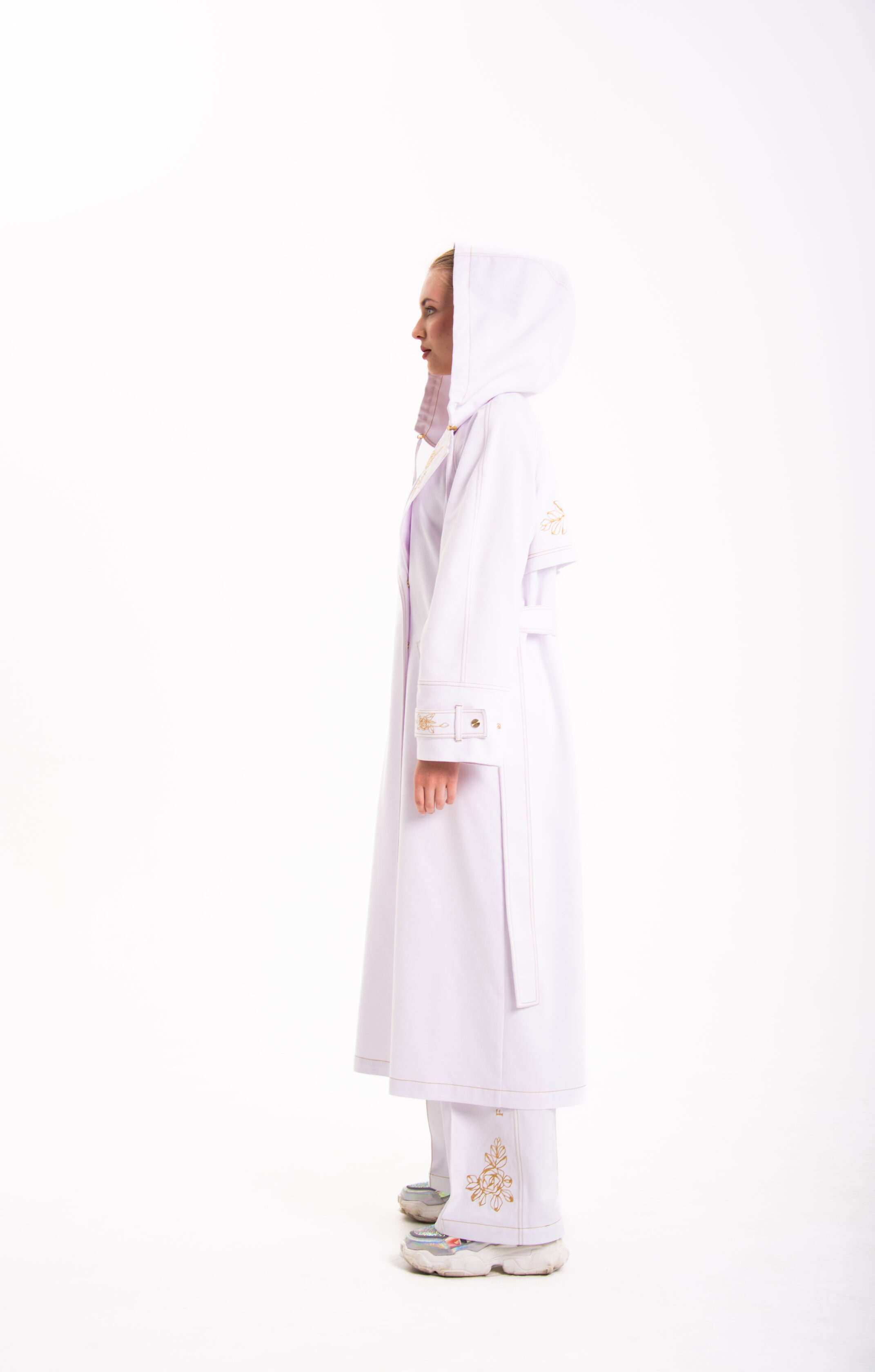 - Широкий двойной капюшон: эффектный, удобный, с архитектурной линией.